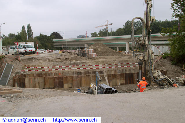 29.07.2009 Während der Verkehr über das bereits erstellte Gleisstück bei der Überlandstrasse rollt wird der zweite Teil gebaut. (Grössere