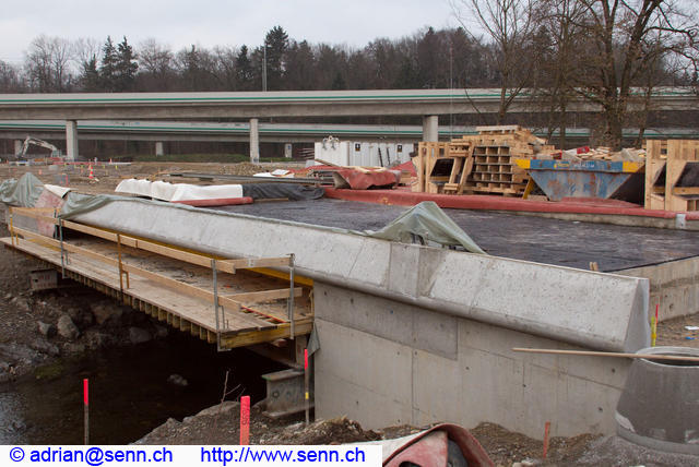 23.12.2008 Die Brücke über den Chriesbach ist nun fast fertiggestellt. Im Bereich Giessen laufen noch die Arbeiten für die Stützpfeiler. (Grössere