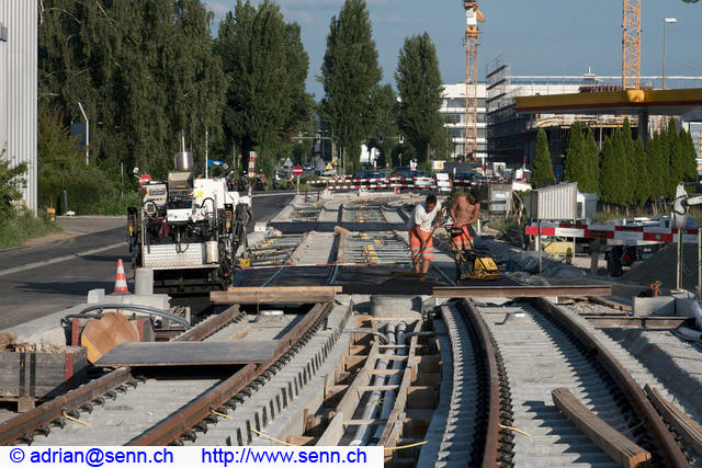 03.08.2010 Belagsarbeiten entlang der Neugutstrasse. Diese wurde parallel zum Bau der Glattalbahn ebenfalls neu gebaut. (Grössere