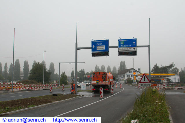 28.08.2009 Die Strassenquerung der Überlandstrasse ist fertig gestellt. Noch rollt der Verkehr über die Umleitung. (Grössere