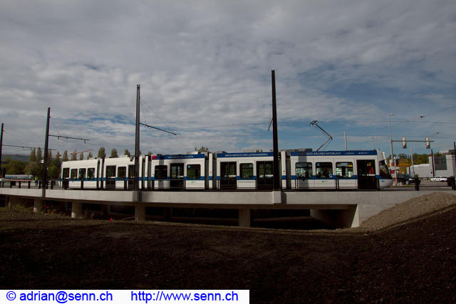 04.10.2010 Erste Probefahrten auf dem Streckenast zwischen Auzelg und Stettbach. Querung der Überlandstrasse. (Grössere