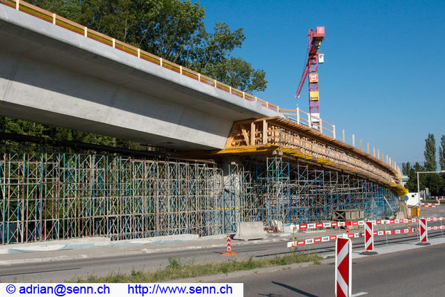 11.08.2009 Der Brückenabschnitt über die Autobahneinfahrt ist erstellt. (Grössere