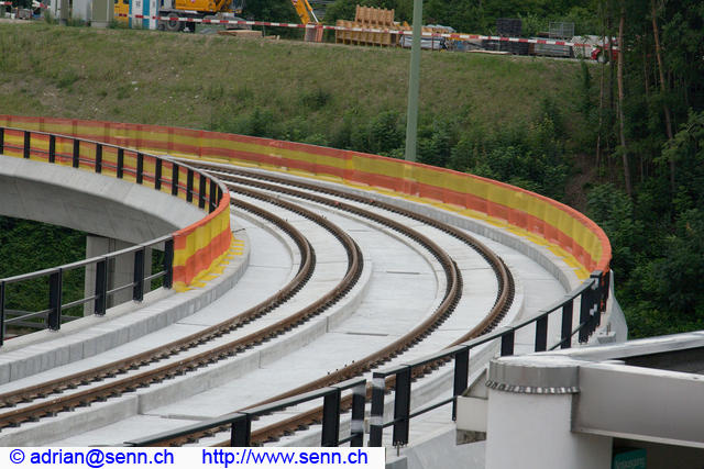 04.10.2010 Erste Probefahrten auf dem Streckenast zwischen Auzelg und Stettbach. Rampe in Richtung Haltestelle Neugut. (Grössere